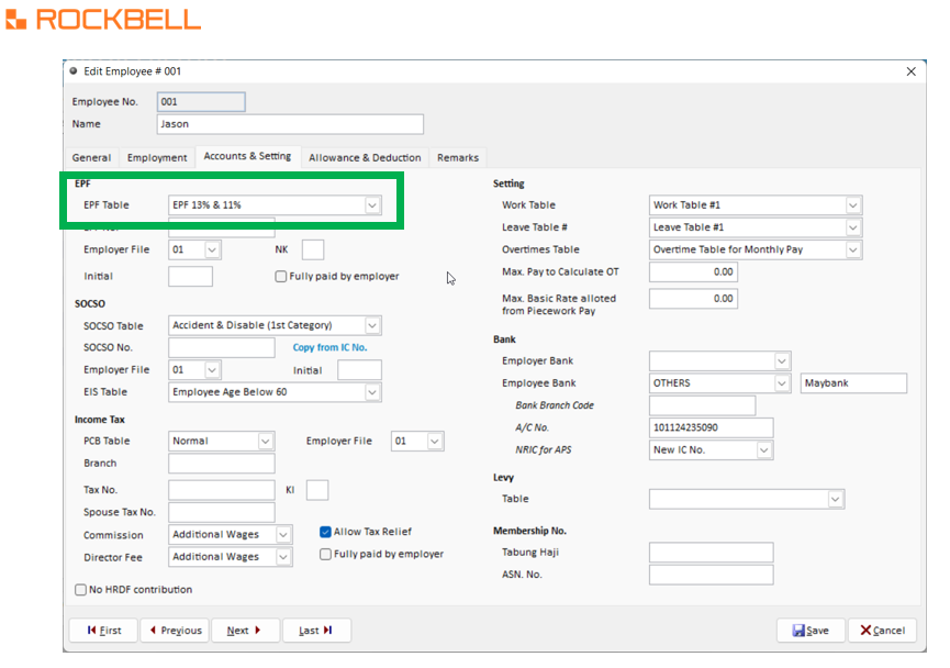 1. Employee > Employee Maintenance > Quick Update2. Tick all the Staff > EPF Table Select EPF 13% & 11% > OK3. Select 'Yes' for update it4. Complete