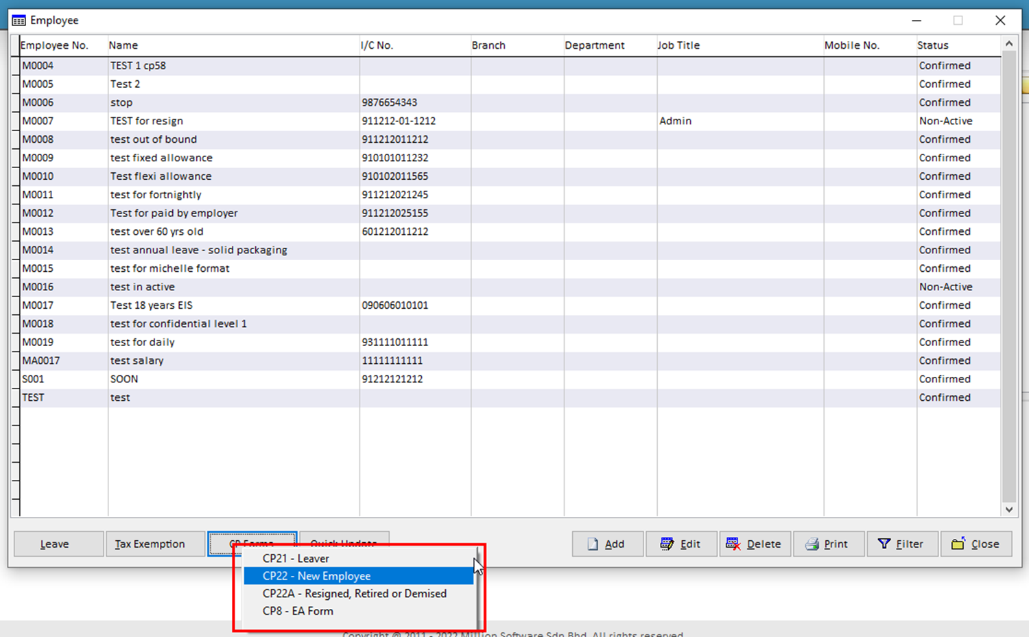 2. Select employee > Click CP Forms button below > Select the CP form