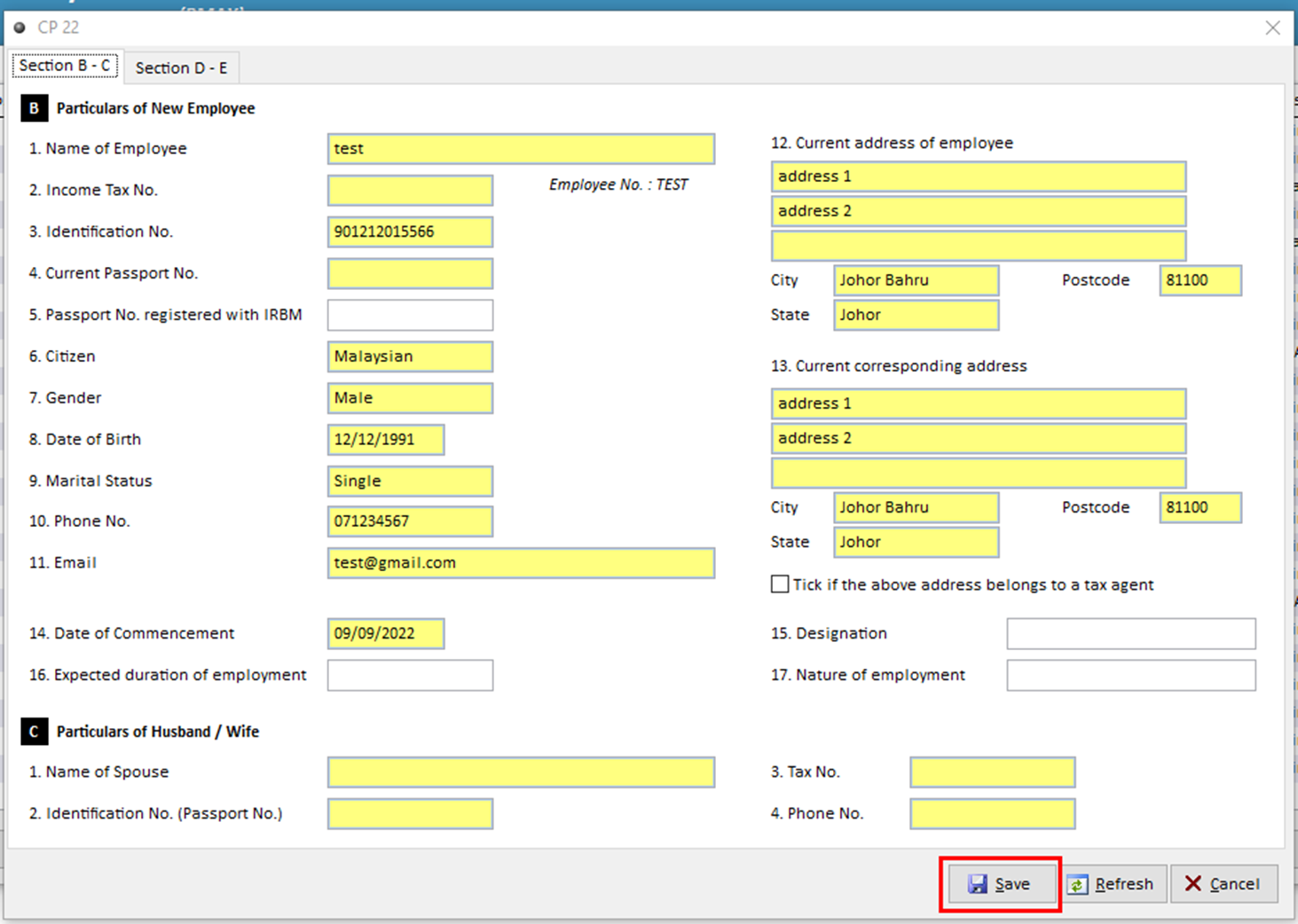 3. Check the employee details > Click Save