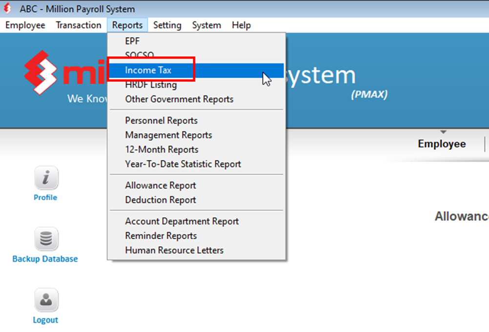4. Go Reports > Income Tax.