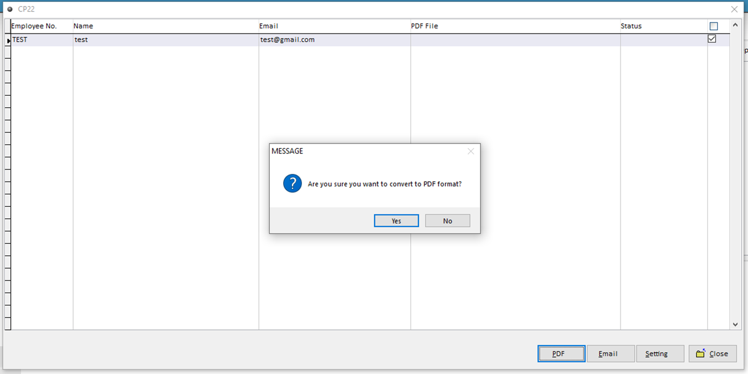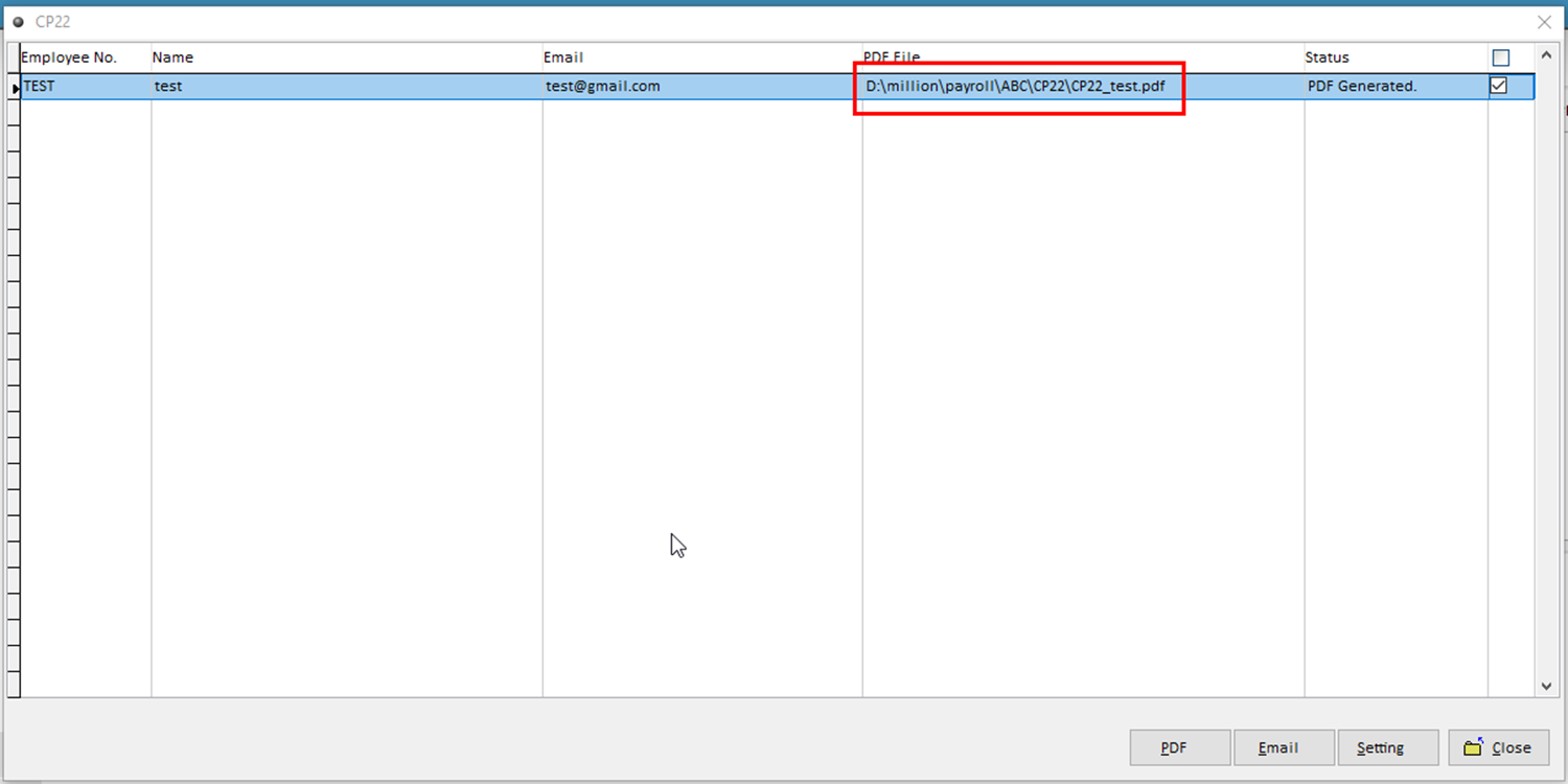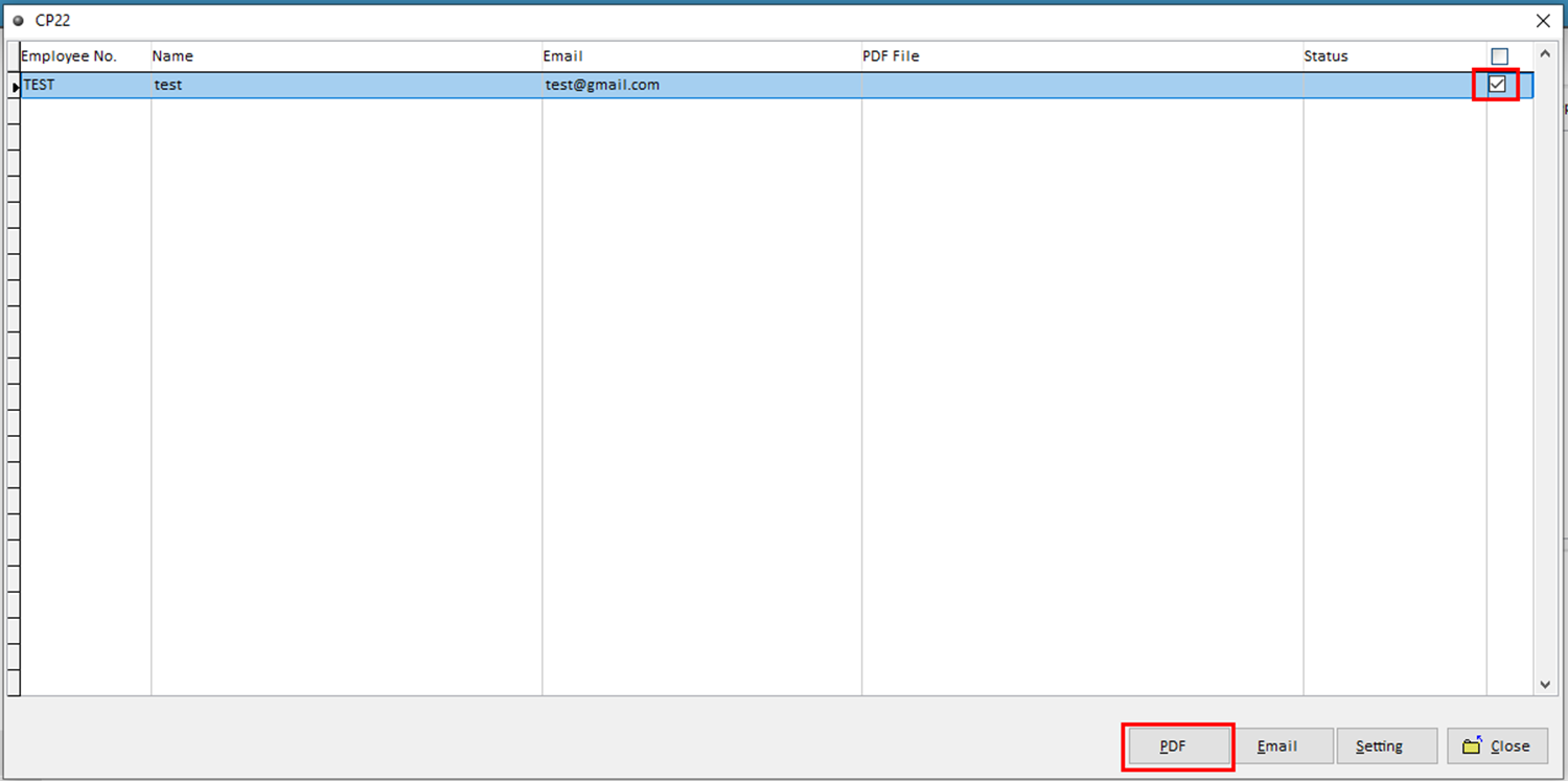 6. Tick the employee name > Click PDF.