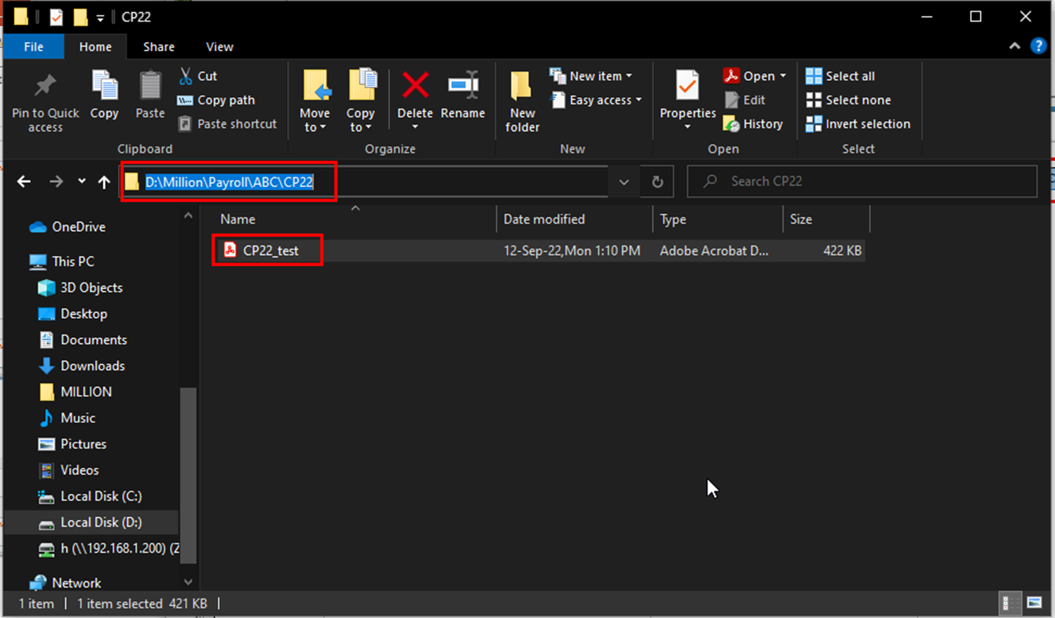 Example: Go to C or D :\\Million\Paytoll\Company\CP22.