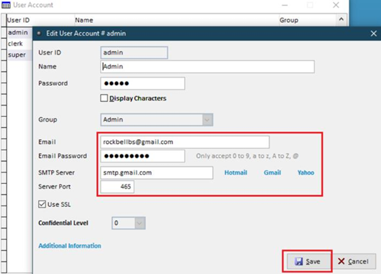 - Key in email, email password, SMTP server, & server port.