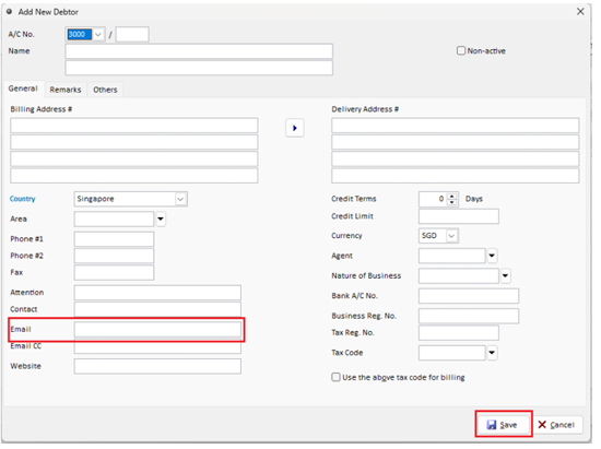 - Select & edit debtor, key in email & save.