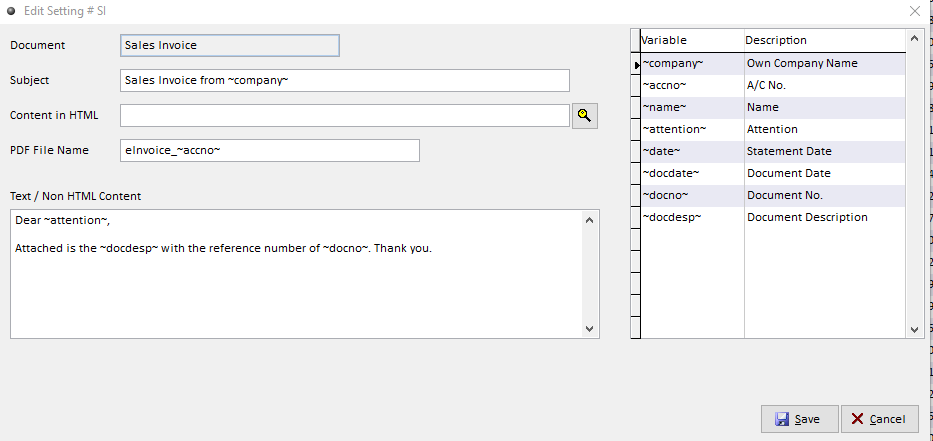 - Before clicking 'Email' at Step 3, click 'Setting' to configure email subject, file name & body text of the email.